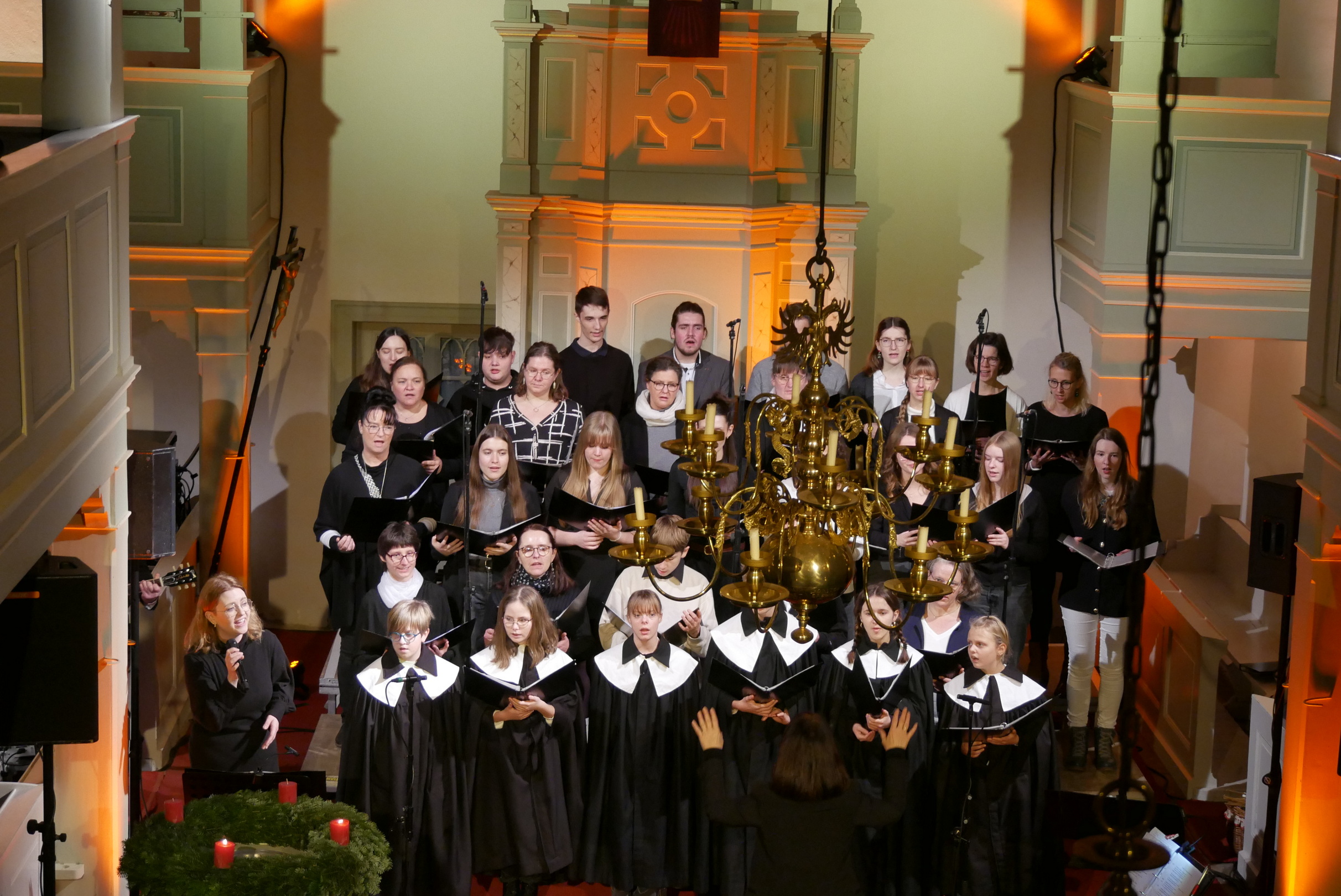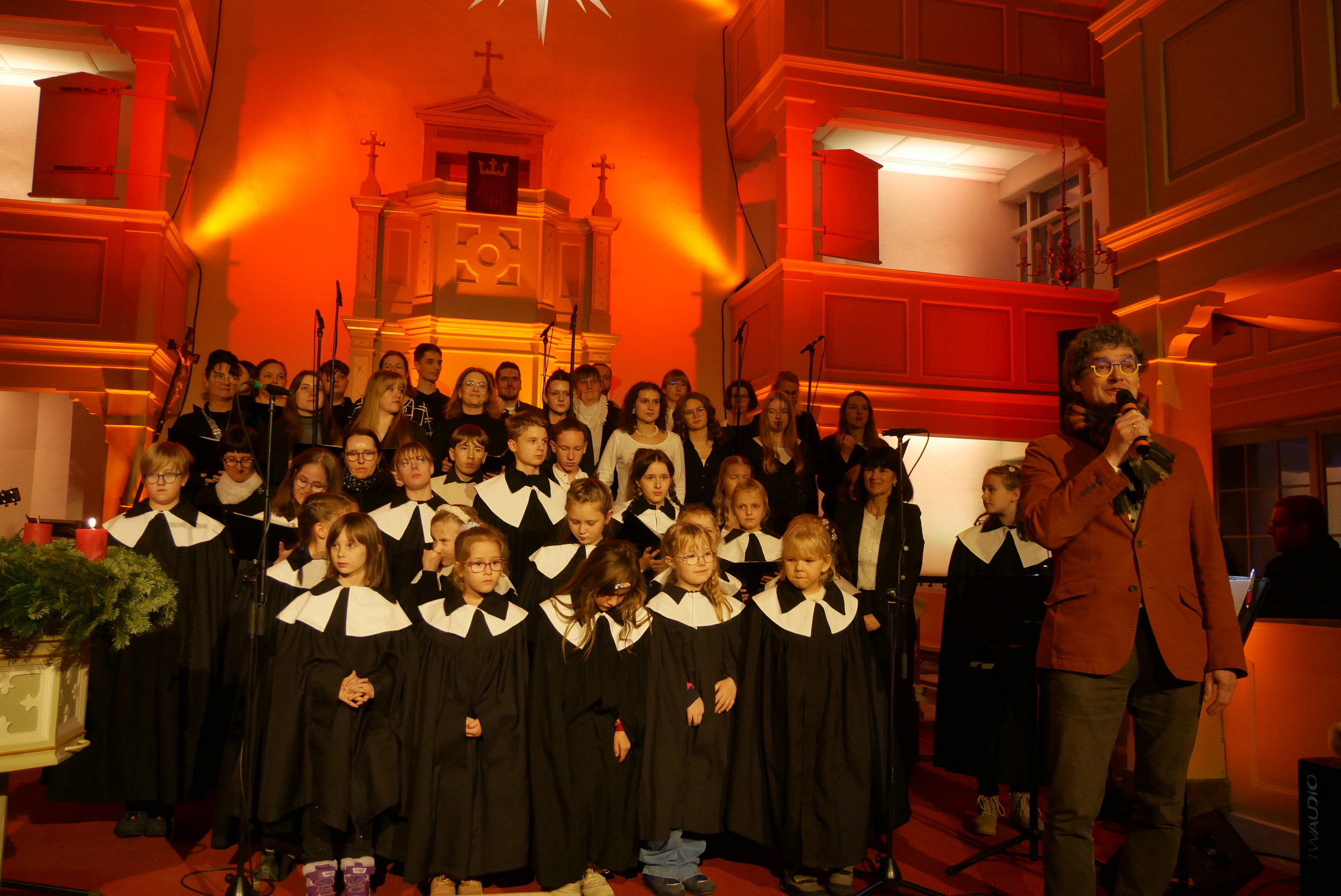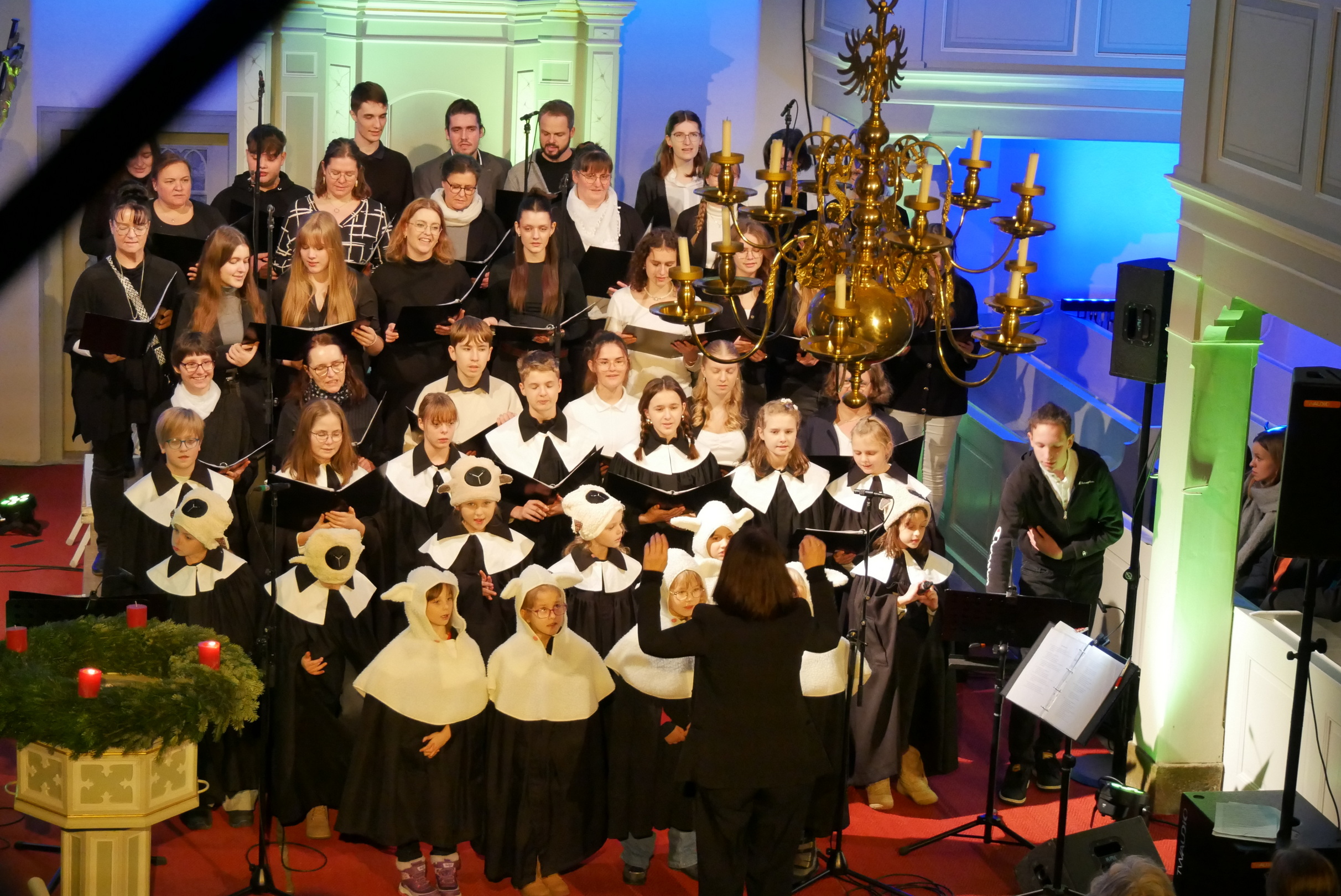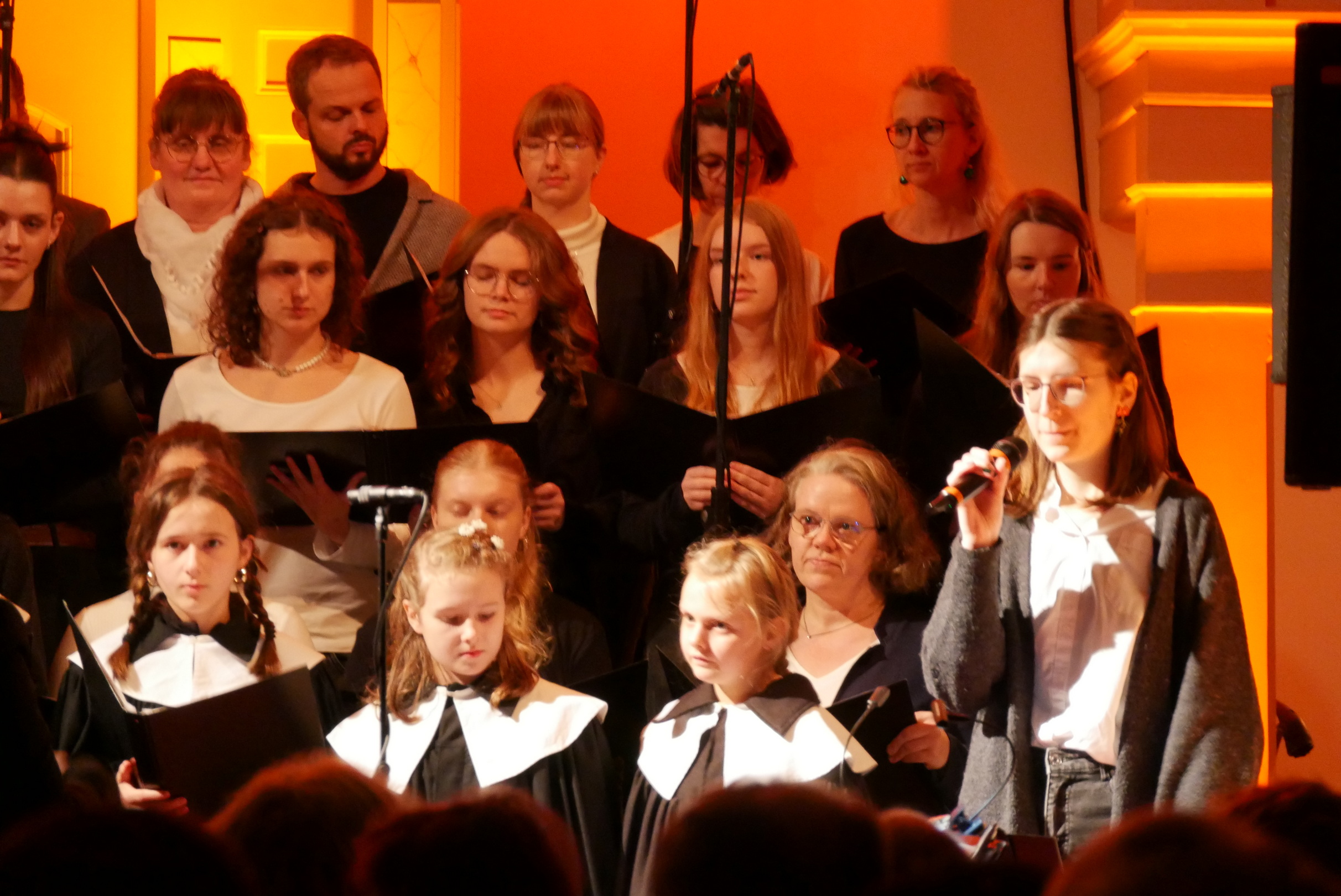 So lautete das Thema des diesjährigen Adventskonzert der Kemnitzer Kurrende am 2. Adventssonntag. Über 45 kleine und große Sängerinnen präsentierten traditionelle, aber überwiegend neue Advents- und Weihnachtslieder im gewohnt modernen Sound. Umbettet von einer tollen Lichtshow ging es um die beste Botschaft: Wir finden das Kind in der Krippe – den Erlöser der Welt.