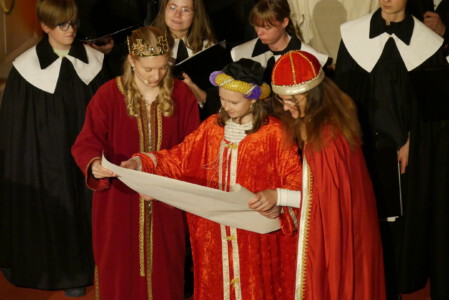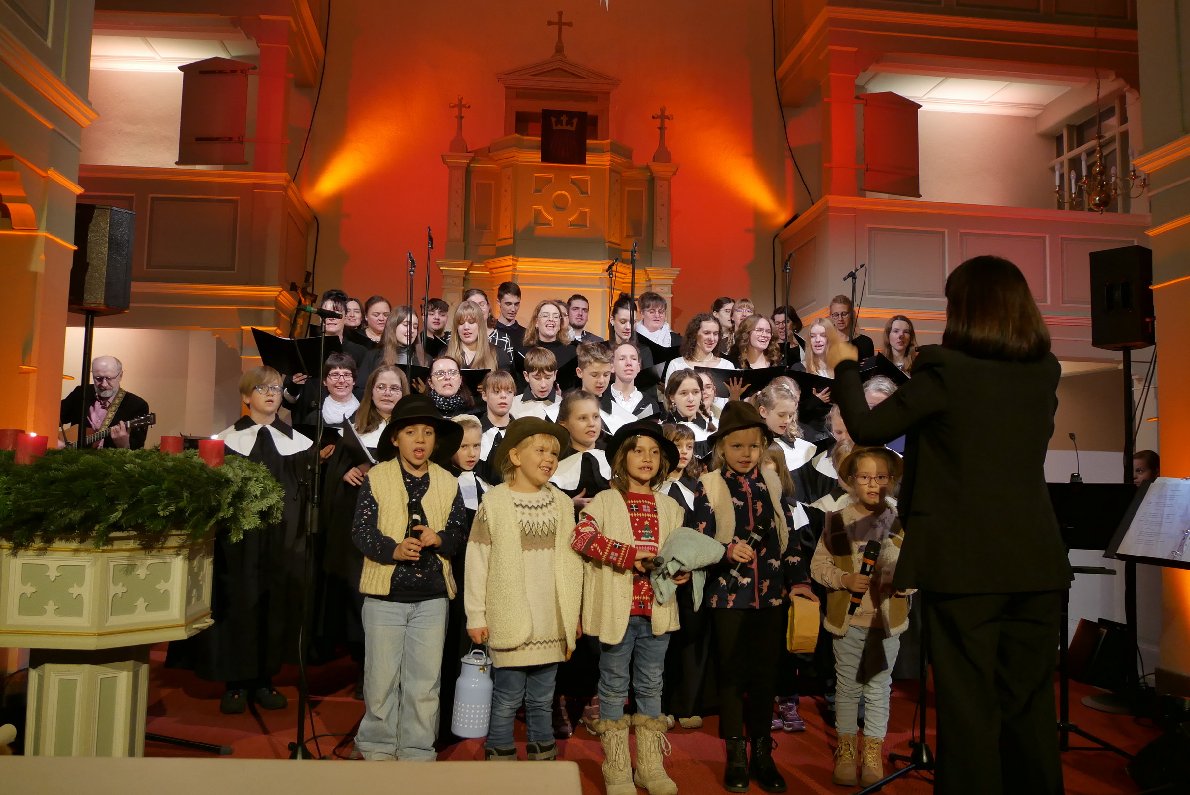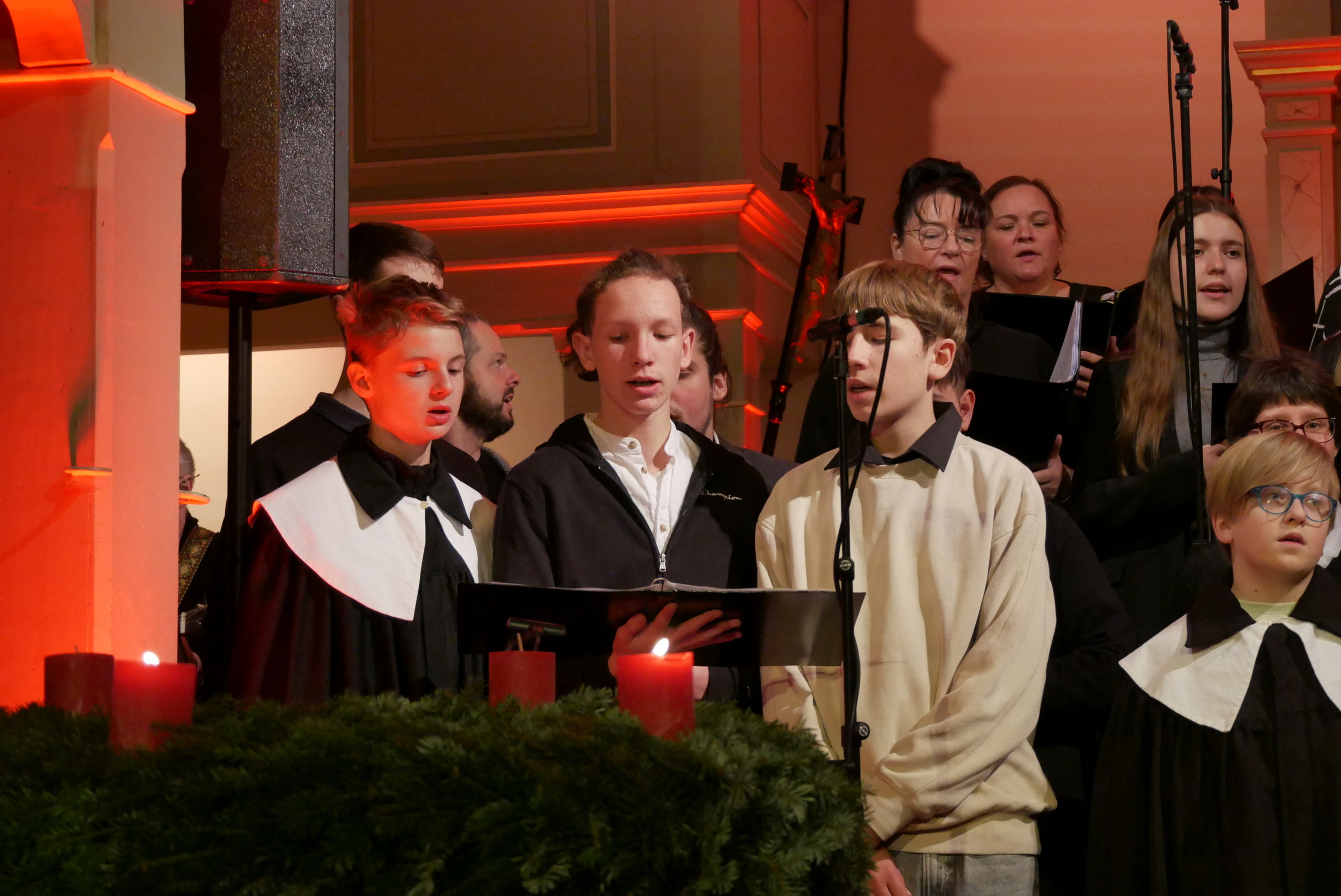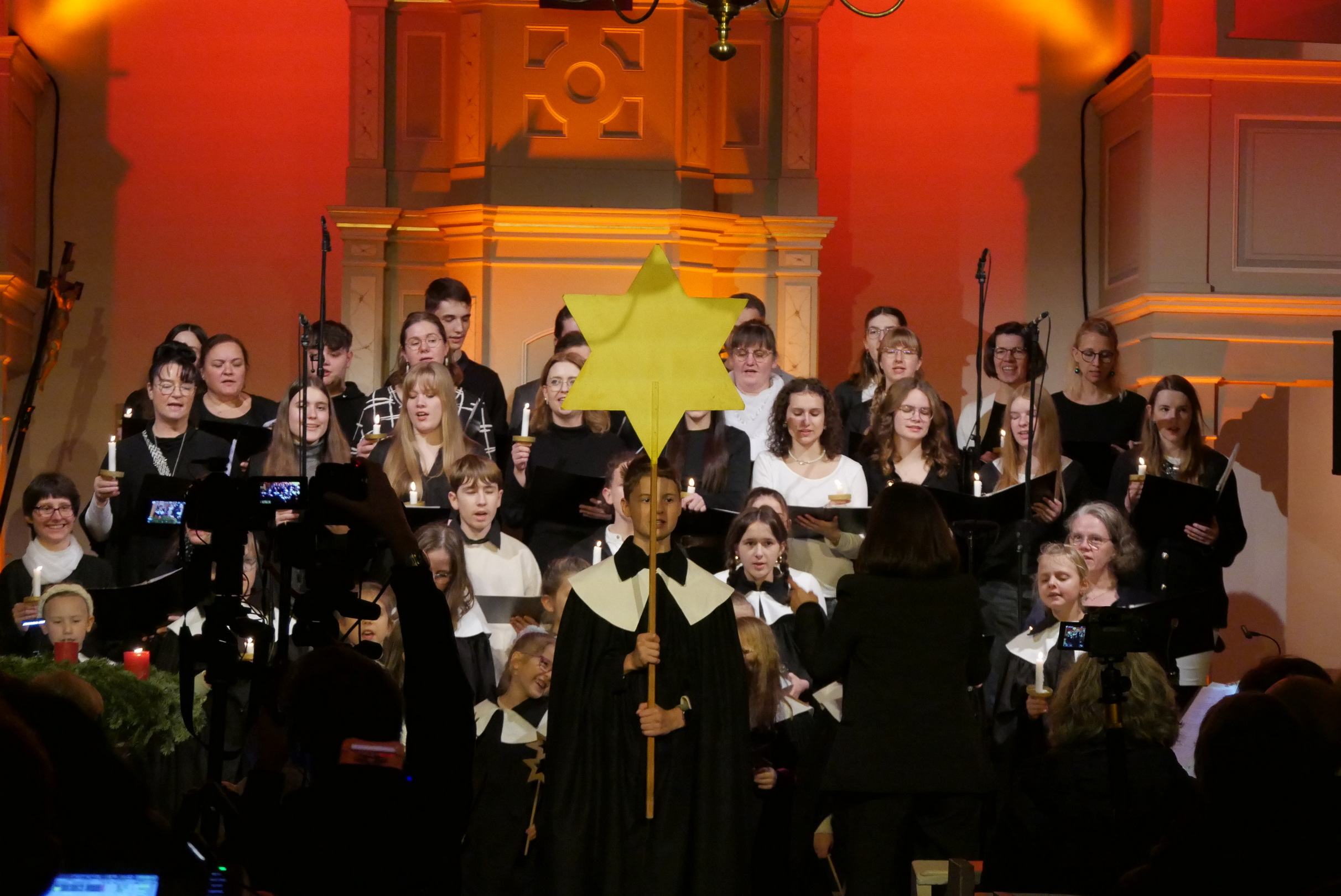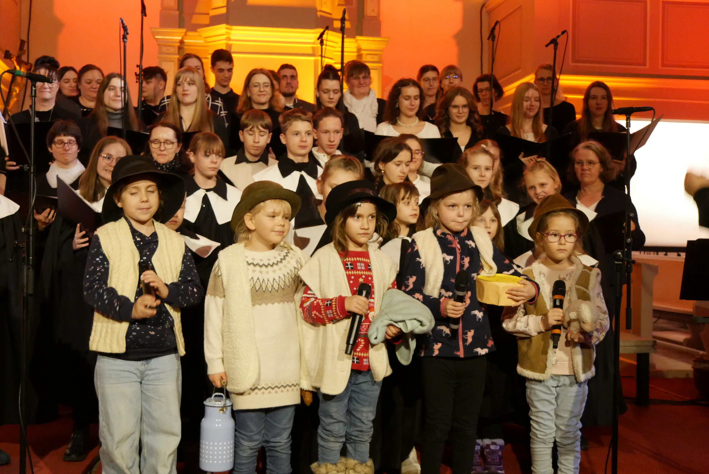 So lautete das Thema des diesjährigen Adventskonzert der Kemnitzer Kurrende am 2. Adventssonntag. Über 45 kleine und große Sängerinnen präsentierten traditionelle, aber überwiegend neue Advents- und Weihnachtslieder im gewohnt modernen Sound. Umbettet von einer tollen Lichtshow ging es um die beste Botschaft: Wir finden das Kind in der Krippe – den Erlöser der Welt.