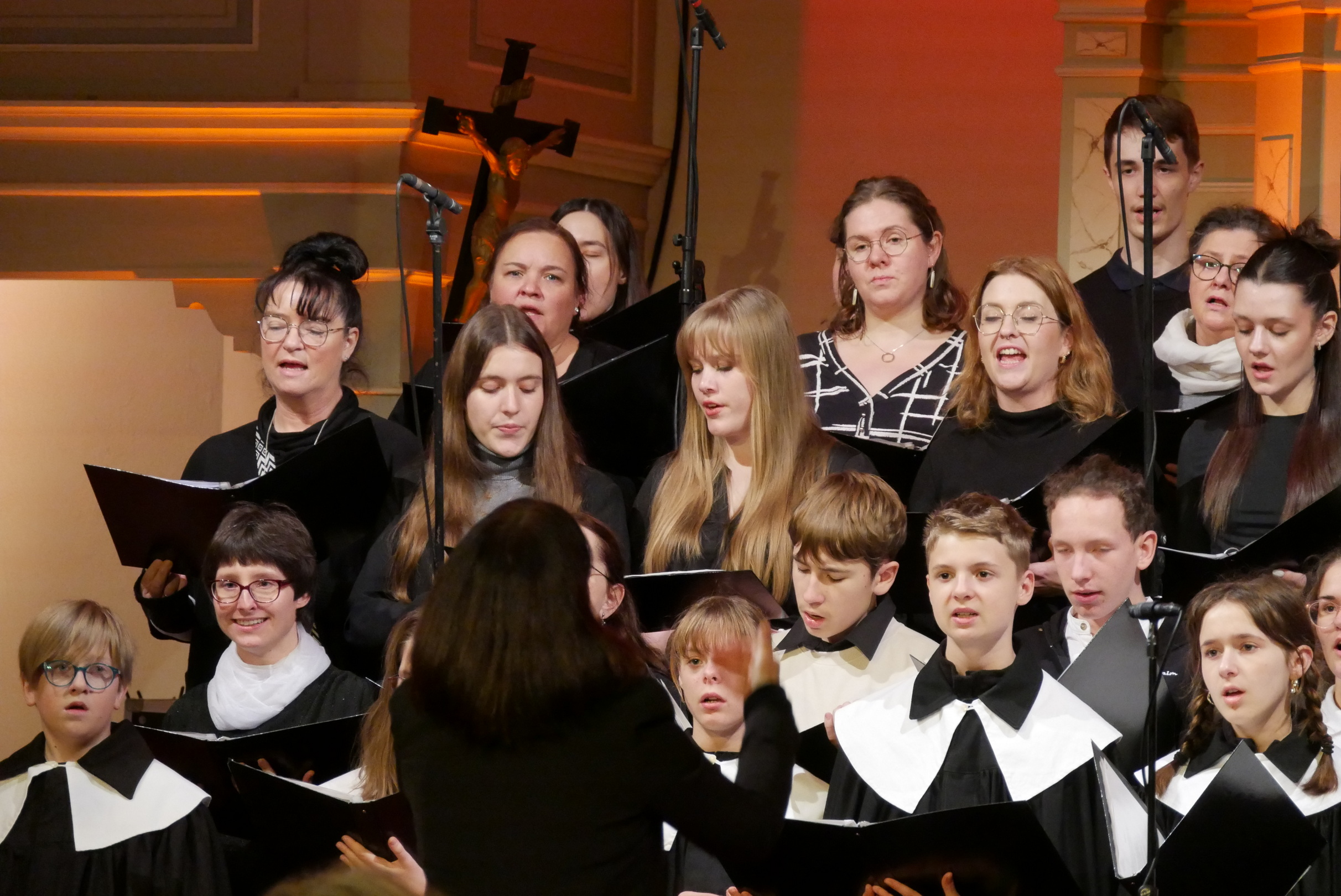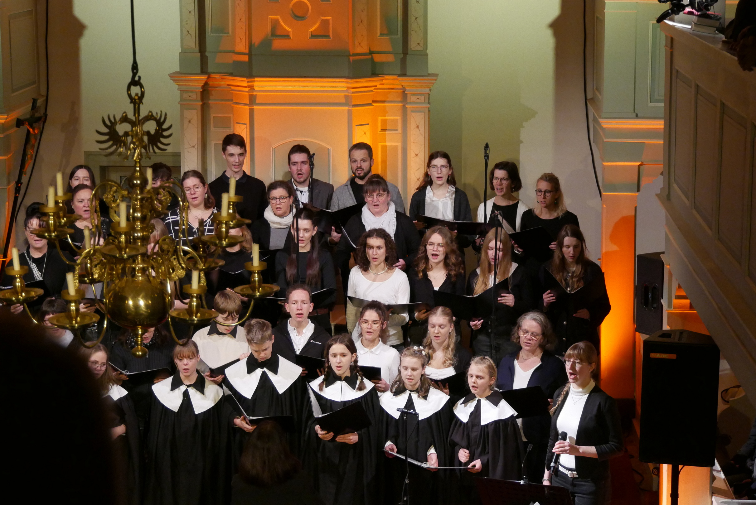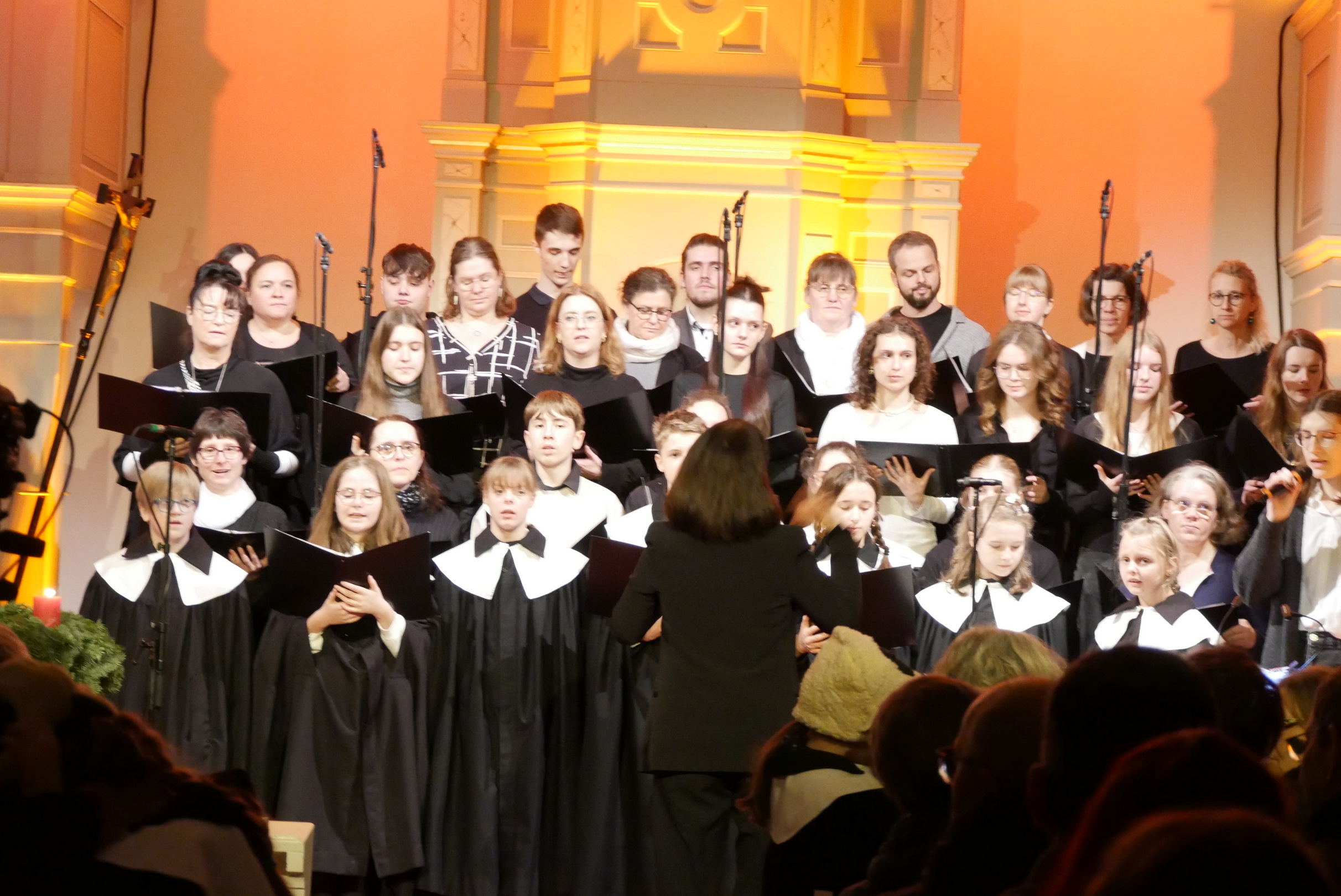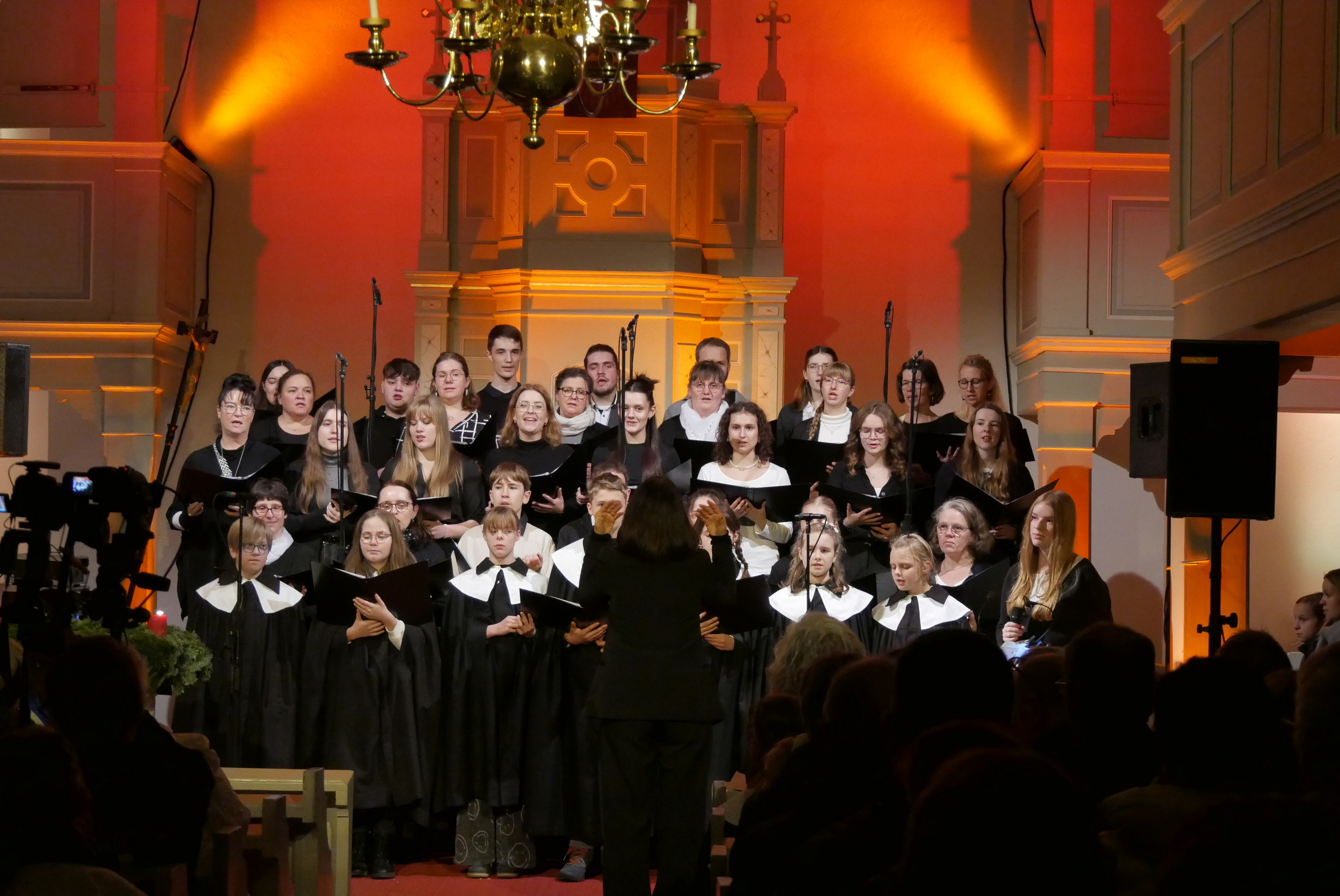 So lautete das Thema des diesjährigen Adventskonzert der Kemnitzer Kurrende am 2. Adventssonntag. Über 45 kleine und große Sängerinnen präsentierten traditionelle, aber überwiegend neue Advents- und Weihnachtslieder im gewohnt modernen Sound. Umbettet von einer tollen Lichtshow ging es um die beste Botschaft: Wir finden das Kind in der Krippe – den Erlöser der Welt.