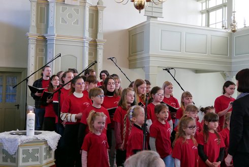 Musikalisch haben wir jedoch einen anderen Stil: Klassische Töne gibts eher selten, dafür moderne, teils rockige Musik. Begleitet von 3 Musikern singen über 40 kleine und große Sängerinnen und Sänger.